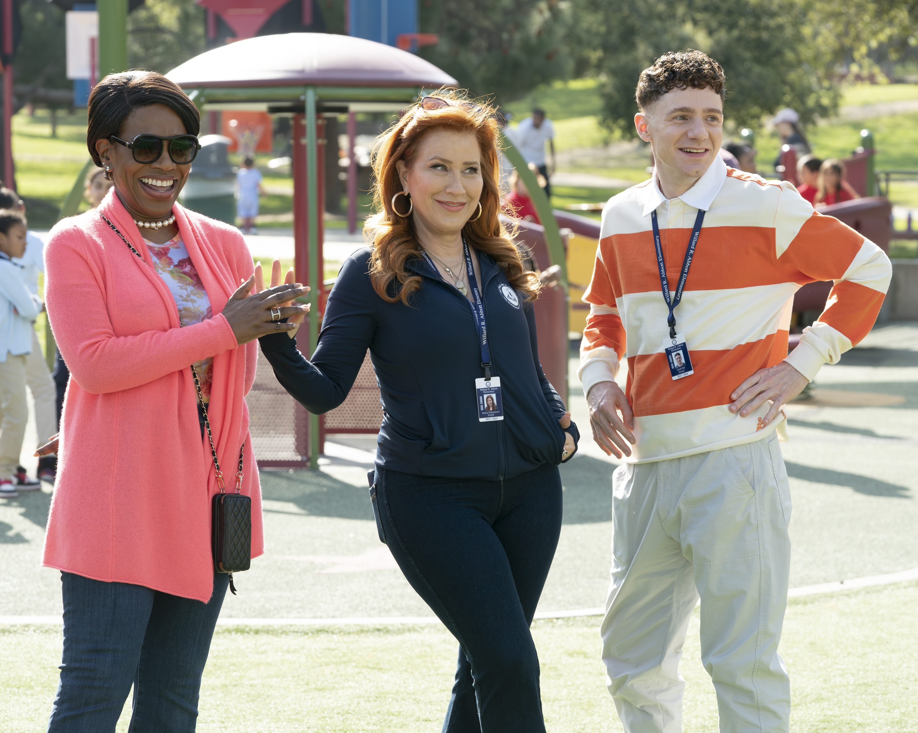 Spencer Williams: That makes a lot of sense. They’re not always getting new uniforms, even though I’m sure they’re trashing them with food and whatnot. I want to talk now about a few of our favorite characters. Let’s start with Janine, who has had quite the season. She’s now working with the school district, and we’ve seen a glow-up through the three seasons. Once she started working with the school district, there was a notable, “Oh, okay, someone maybe went shopping.” What was it like for Janine in season three?